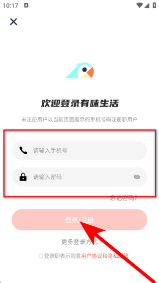 4、输入密码,勾选协议后,点击登录注册,完成登录。