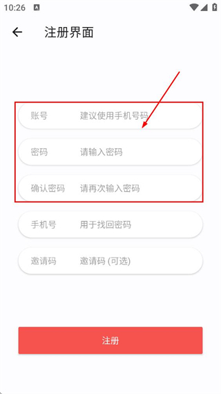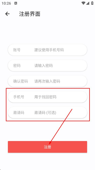 5、在注册界面,填写手机号,邀请码选填后,点击注册,完成账号注册操作。