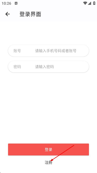 3、在登录界面,点击下方的注册选项,进入注册界面。