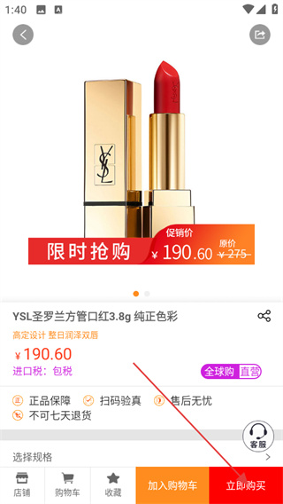 3、在口红列表页,选择目标商品,进入商品详情页。