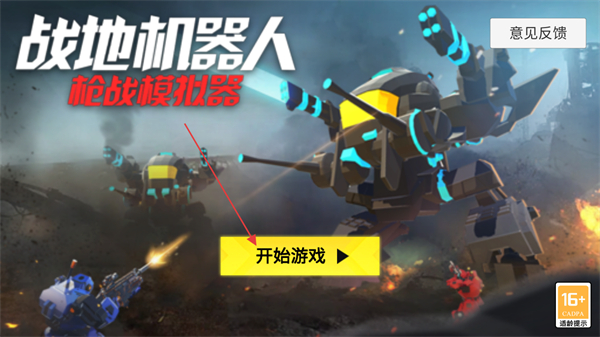 1、打开机器人枪战游戏主页,点击中间的开始游戏按钮进入战斗。