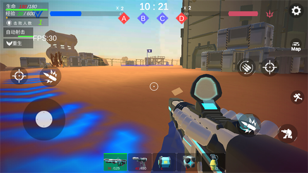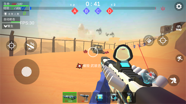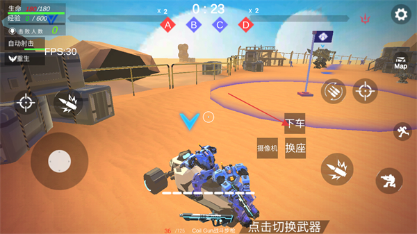 4、点击右下角或移动键上方的开火按钮,可以进行设计击毁敌方机器人或是载具。