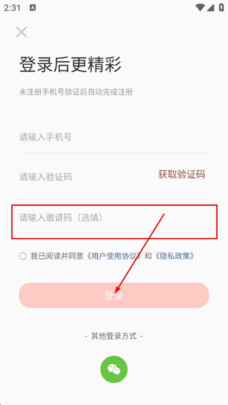 3、邀请码选填后,点击登录的按钮,完成该应用的账号登录。
