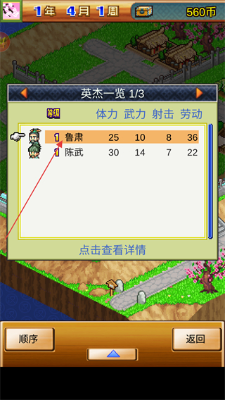 3、在英杰一览表中可以看到村落内所有英杰的个人属性列表,点击名称可以查看详情。
