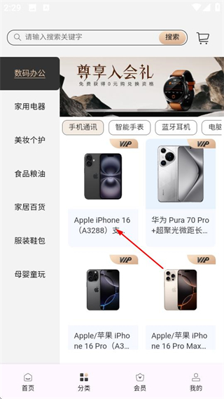 2、在分类页面,选择目标商品,进入商品详情页。