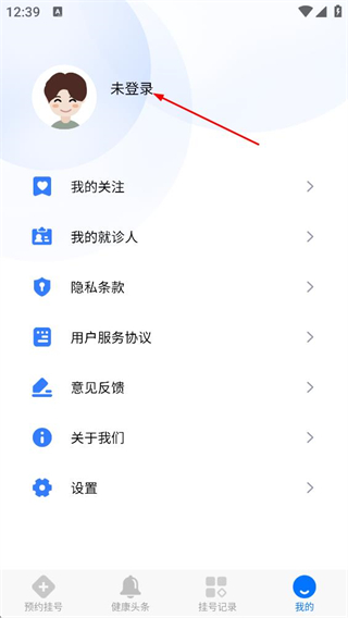 3、在个人页面,点击未登录的区域,进入登录页面。