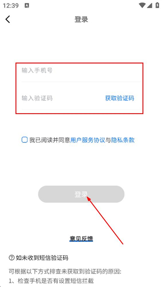 4、填写输入手机号,获取验证码后填写验证码,点击登录完成账号登录。