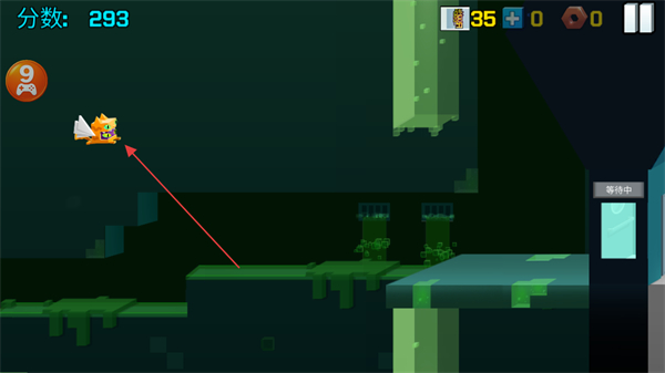 2、角色获得翅膀飞行,在场景内移动,分数提升至293。