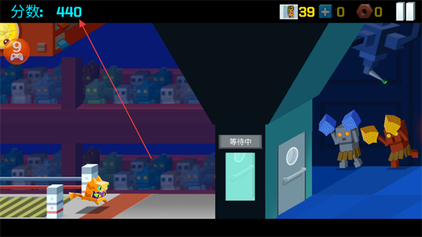 4、进入新场景移动探索,分数增加到440,等待进入下一个房间。