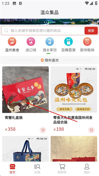 1、在温众集品首页选择商品,点击进入该商品的详情页面。