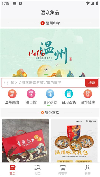 聚焦温州本地特色,汇集大量本地美食好物,搭配酒水饮品、日用百货、服饰鞋袜等全品类资源,凸显地域电商特色,满足用户对本地好物与日常用品的购物需求。