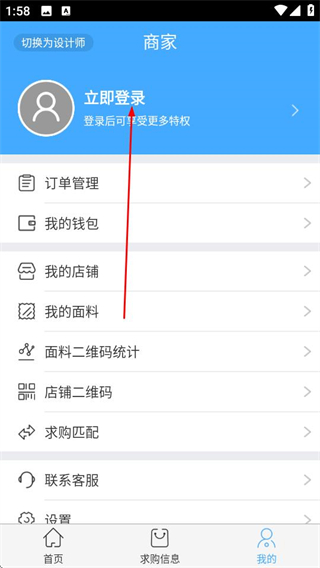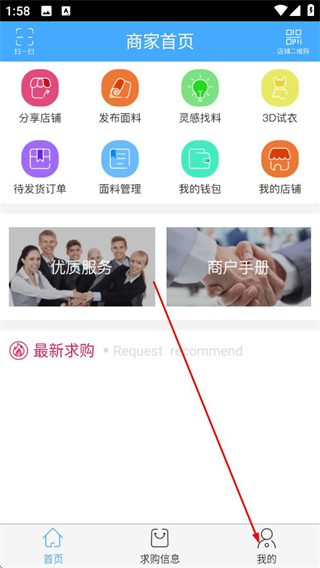 1、在商家首页点击底部导航栏的我的选项,进入对应的个人页面。