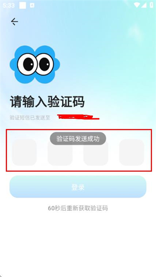 4、在输入短信验证码页面的输入框中填写收到的验证码,完成账号的登录操作。