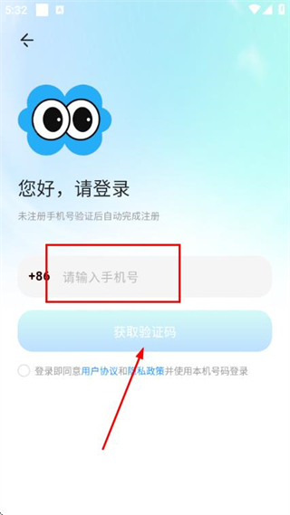 3、在手机验证登录页面填写手机号,勾选协议后,点击获取验证码。