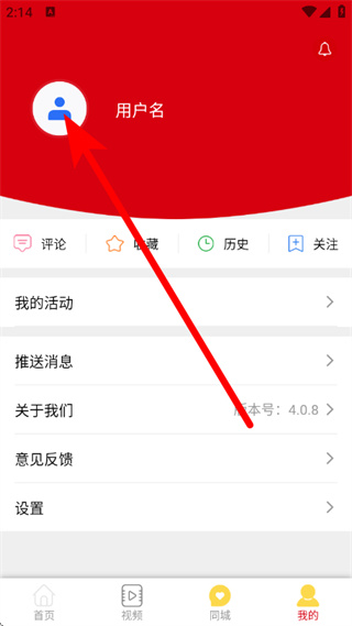 2、在我的页面,点击头像区域,进入登录界面。