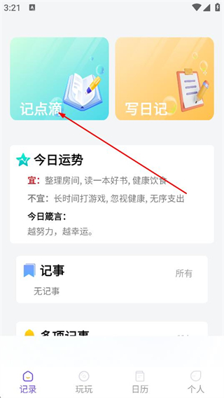 2、在记录页面,点击记点滴的选项,进入内容编辑页面。