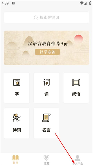 1、在教育App首页,点击底部个人中心,进入个人中心页面。