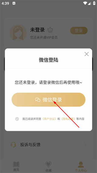 2、在个人中心页面,点击右上角的登录按钮,弹出微信登录弹窗。
