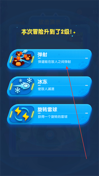 2、升级后选择弹射技能,解锁弹道在敌人之间弹射的效果。