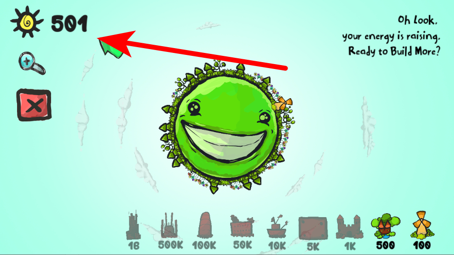 2、在游戏主界面,查看左上角能量数值,等待能量积累至可建设状态。