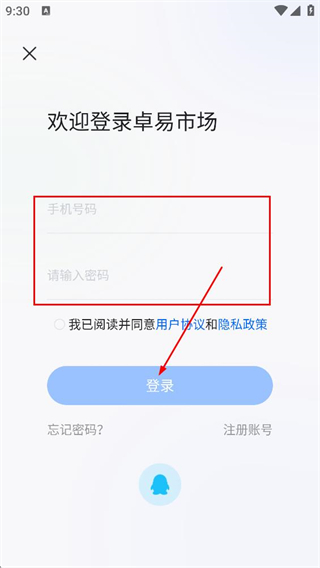 3、在登录页面,填写手机号与密码,点击登录,完成账号登录。