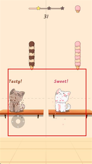 逻辑简单却充满萌趣,左猫偏爱浓郁口味、右猫偏爱甜味,投喂正确会触发猫咪的可爱反馈,适配治愈休闲的需求。