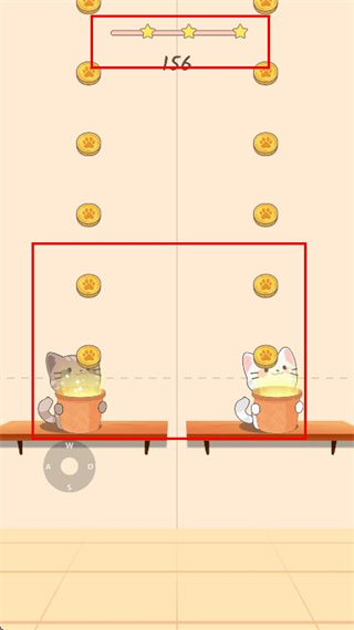 2、在游戏过程中会掉落星星,需要用猫咪接住星星。