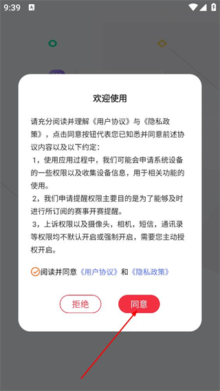 1、在欢迎使用弹窗中,并点击同意,进入应用主页面。