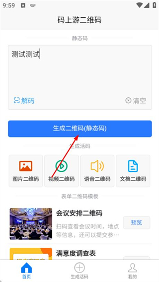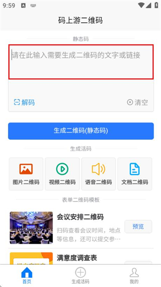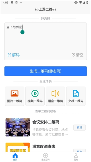 码上游二维码是一款功能全面且操作简便的应用,提供一站式二维码生成与管理解决方案,支持图片、视频、语音、文档等多种内容形式快速生成专属二维码,可自由美化编辑,具备集成展示与详尽数据统计功能,实时了解二维码使用情况。