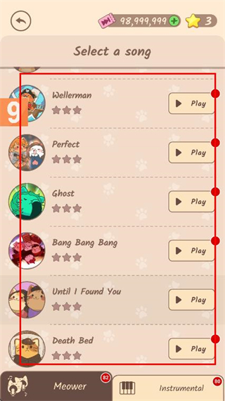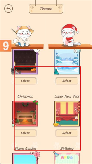 4、全猫咪、全主题、全歌曲解锁后,可自由组合搭配,用猫咪搭配主题,每一局都能打造专属体验。