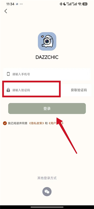 5、在验证码输入框填写收到的验证码,勾选我已阅读并同意后,点击登录,完成注册。