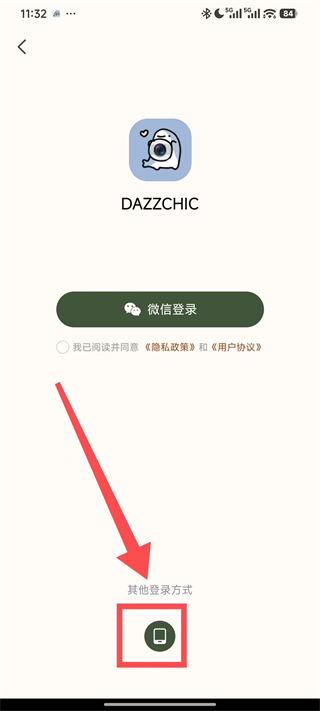 3、在登录页面,点击选择手机号注册方式。