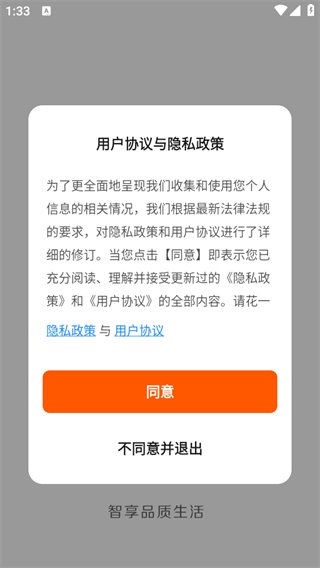 1、打开智米尼app后,在用户协议与隐私政策弹窗,点击同意进入。