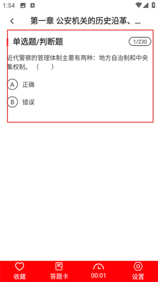 3、在章节列表页,选择第一章公安机关的历史沿革等内容,进入该章节的答题页。