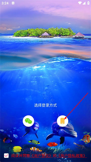 1、在选择登录方式页面,选择对应登录方式,进入手机登录页面。