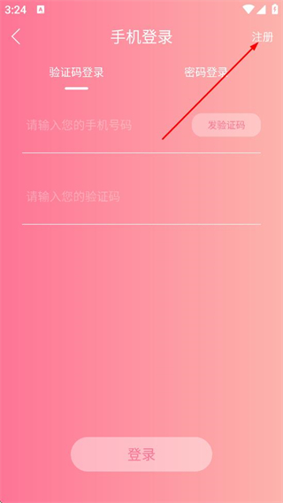 2、在手机登录页面,点击右上角的注册选项,进入手机注册页面。