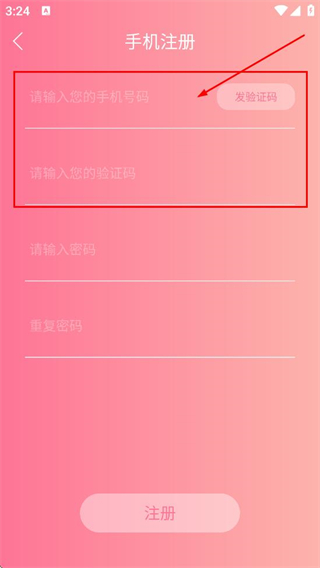 3、在手机注册页面,填写手机号码,然后可以填写对应的验证码。