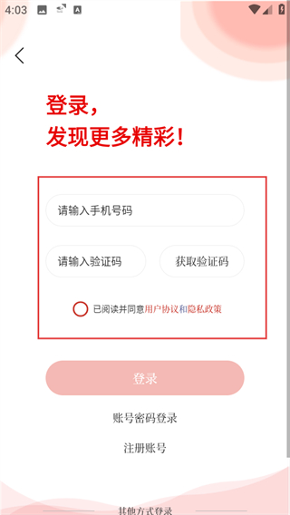 3、在登录页面,填写信息,勾选协议后点击登录完成账号登录。