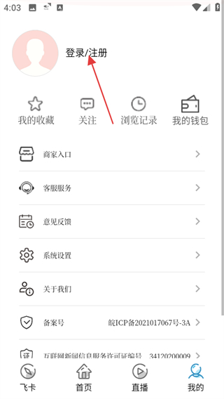 2、在个人中心页面,点击登录注册区域,进入登录页面。