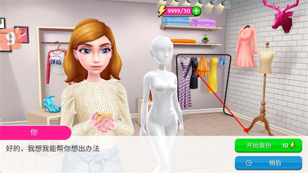 1、进入游戏后,接收客户的装扮需求,点击开始装扮消耗能量启动搭配流程。