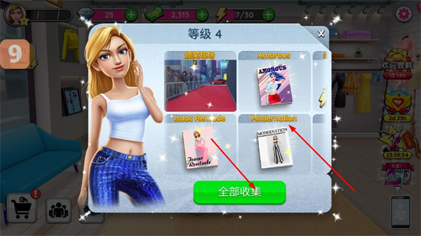 4、等级提升后解锁时尚杂志等收藏内容,点击全部收集,获取对应的专辑奖励。