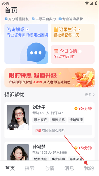 1、在灵机新算首页,点击底部的我的选项,进入个人中心页面。