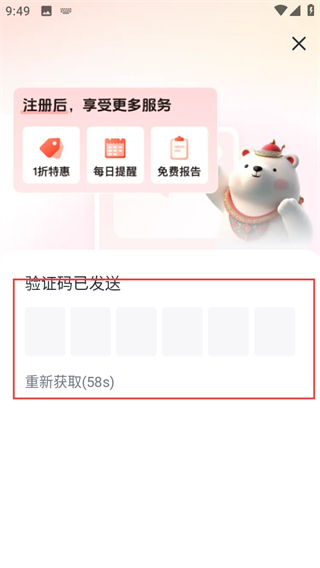4、在验证码页面,输入收到的验证码,完成账号登录操作。