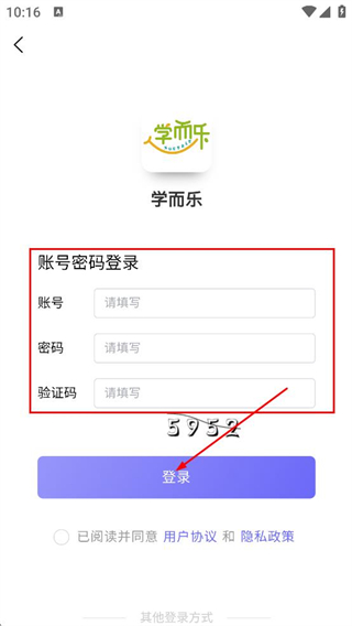 3、在账号密码登录页面,依次填写账号、密码、对应验证码,点击登录,完成账号登录。