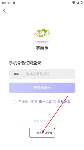 2、在手机号验证码登录页面,点击账号密码登录选项,切换到账号密码登录页面。