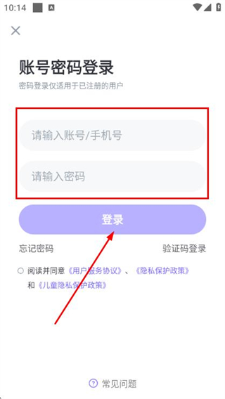3、在登录页面填写手机号和密码,勾选协议后,点击登录完成账号登录操作。