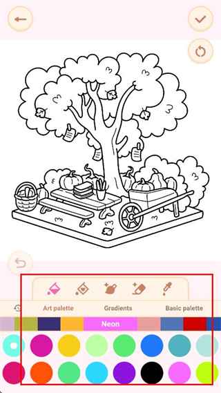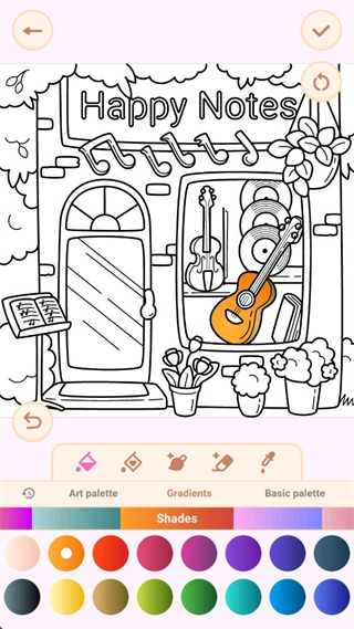 游戏提供丰富的温馨主题线稿,涵盖居家空间、生活场景等,每幅线稿都充满细腻的生活细节,玩家可自由选择喜欢的场景开启涂色。涂色功能丰富且易上手,配备艺术调色板、渐变、霓虹、纹理等多种涂色工具,支持从基础单色到创意纹理的多样风格创作,既可以按现实色彩还原温馨氛围,也能发挥脑洞用霓虹色、花纹纹理打造个性作品。整体画风柔和治愈,适配碎片化放松场景,无论是闲暇时进行色彩创作,还是通过涂色舒缓情绪,都能在温馨家园中获得温馨的创作乐趣。