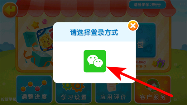 4、在弹出登录方式选择弹窗,选择微信登录方式,完成账号登录操作。