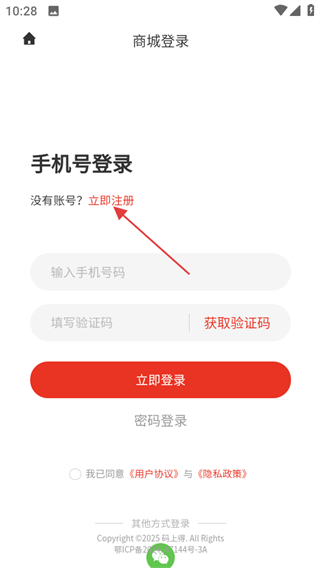 3、在登录页面,点击立即注册选项,进入注册账号页面。