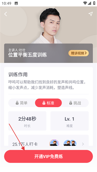 3、在训练详情页,点击开通VIP免费练按钮,进入登录页面。